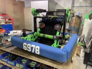In the weeks prior to the competition we built new bumpers to protect the robot, reinforced the swerve drive and removed the robots ability to climb on the stage because it was not a necessity. We changed our programming language from Java to C++, which will make the robot more efficient and run code up to 200 times faster. We also traveled multiple times to our practice field to practice and teach driving to our more inexperienced drive team members.